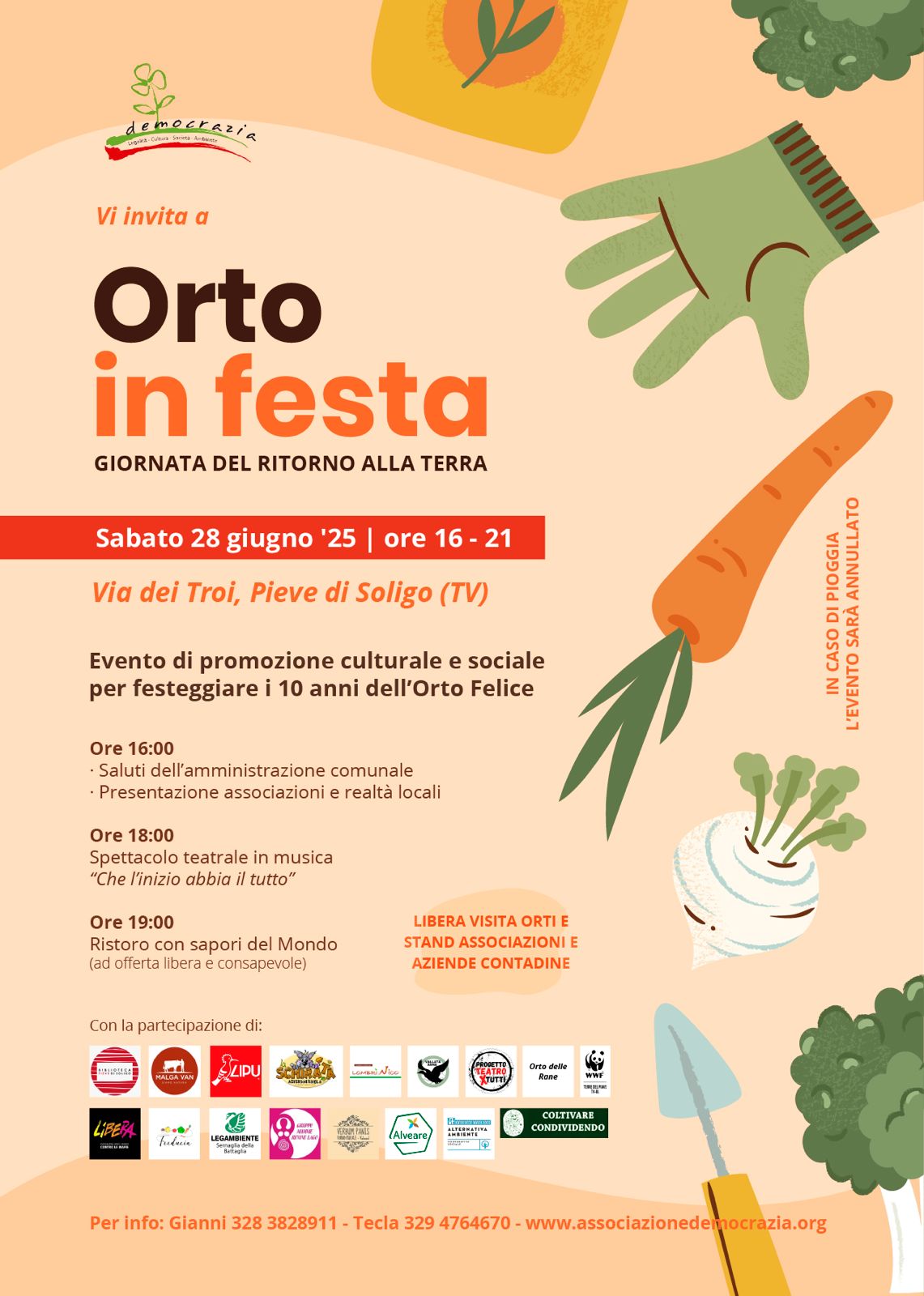 L'Associazione Democrazia invita tutti a un pomeriggio speciale per celebrare insieme i **10 anni di attività dell’**🍅 Orto Felice!